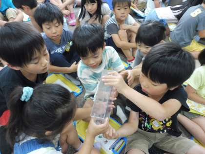 今日は,オオサンショウオについて教えていただきました。まずは,オオサンショウオの仲間である,「イモリ」と「カエル」の観察をしました。