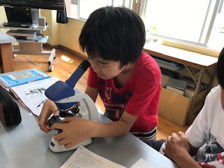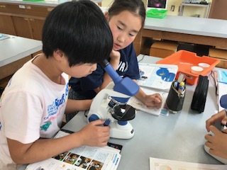 単眼顕微鏡は,置いたものとのぞいたものとでは,上下左右が反対になっていることを学習しました。