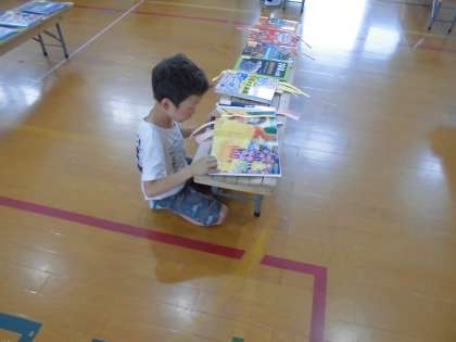 子どもたちはたくさん並べられた本をうれしそうに読んでいきます。