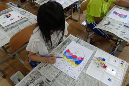 初めての,絵の具を使った学習に子どもたちは大喜び!