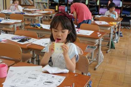 上手な歯の磨き方を確認しながら,丁寧に磨きます。