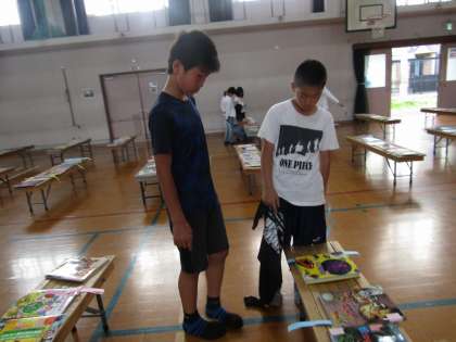 たくさんの新しい本を前にして,とても嬉しそうな子ども達。