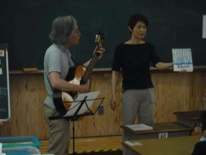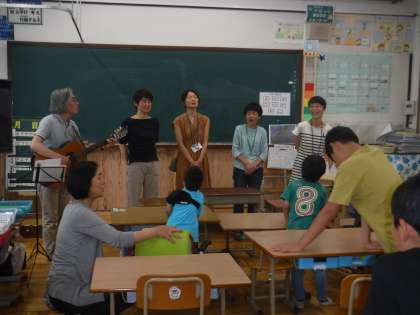 PTAサークル おはなしの会 もこもこさんがそらいろの教室に来てくださり読み聞かせをしていただきました。「あめかな・あめがふるひに・なにたべてたの?・ふたごのたこたこウインナー」の4冊を読んでいただきました。最初の「あめかな」はギターで引き語りをしていただきました。ギターの音色にみんな集中して見入っていました。