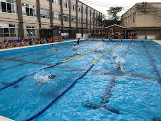 25m泳ぎ切れるように頑張る子,背泳ぎやバタフライに挑戦する子,50mのながいきょりを続けて泳ぐ子などそれぞれの力を出し切って頑張っています♪