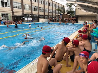 準備運動が終わった後は,それぞれのコースに分かれて,自分の泳げる泳ぎを進めていきます。