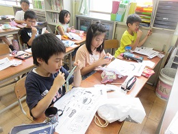 歯ブラシの持ち方や磨き方などを確認しながら,歯を一緒に磨いていきました。