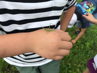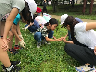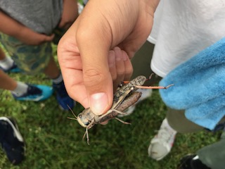 クローバーの観察をした後は,そこら中でとんでいたバッタに興味を持った子どもたちもいました。