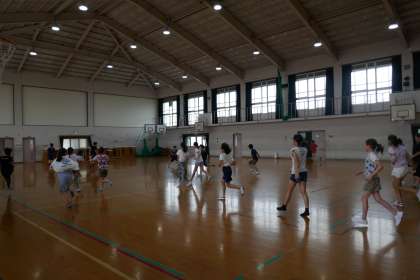 今日はみんな遊びの日でした。真ん中に鬼が待ち構えていて,タッチされないように鬼を避けて反対側へ行くゲームです。あんまり時間がなかったので,次はもっと時間かけて遊びたいですね。