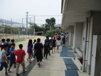 一方,集団下校する子どもたちは,町別ごとの教室に移動する訓練をしました。