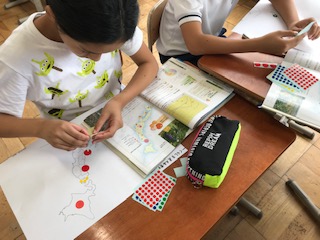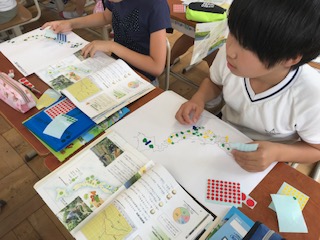 「わたしたちのくらしと食料生産」の学習で,さまざまな農産物の生産地を知った子どもたちは,マップに生産地をまとめています。