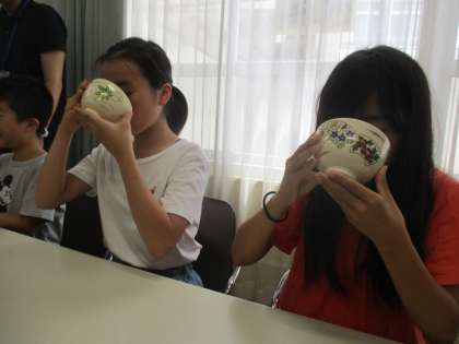 「頂戴します」とあいさつをして,いよいよお茶をいただきました。