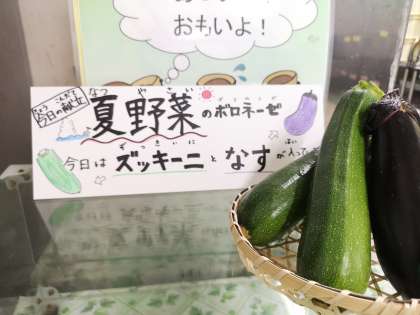 今日の給食は大宮小学校では初となる「夏野菜のボロネーゼ」でした。