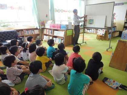 図書館司書のI先生に,読み聞かせをしていただきました。