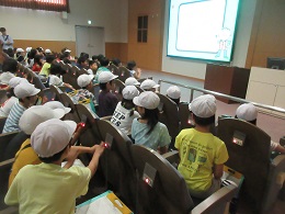 クリーンセンターの方から,ごみの処理にちなんだクイズを出してもらい,子どもたちはとても楽しそうに答えていました。