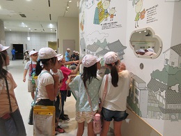 見学の最後には,クリーンセンターにあった展示物を見ながら,ごみの学習を振り返っていきました。