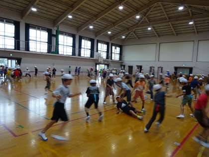 運動委員会の人たちが企画してくれた学年対抗のしっぽとり大会がありました。自分のしっぽを守りながらも,敵のしっぽを取ろうと一生懸命戦っていました。とても楽しい中間休みになりました。