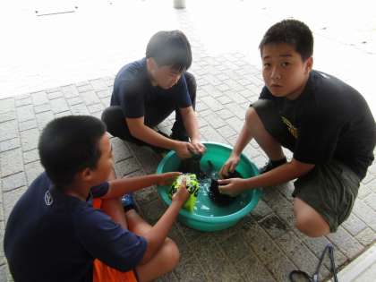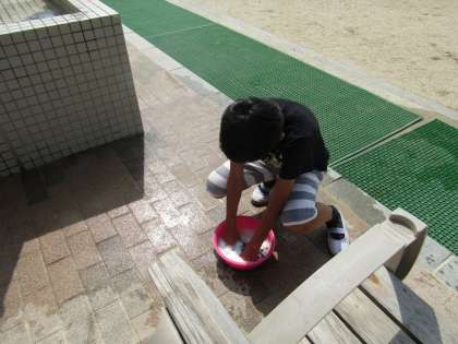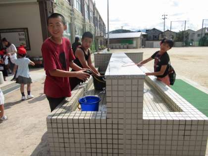 手洗いの学習で,Tシャツ1枚を洗いました。