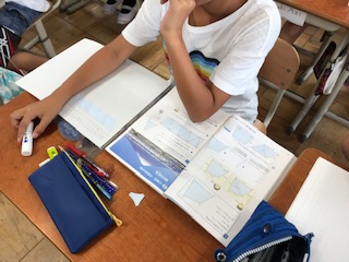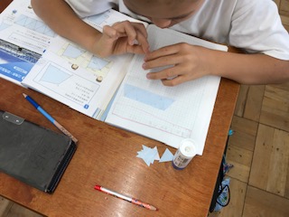合同な図形の学習では,三角形の角の大きさについて調べました。