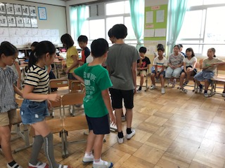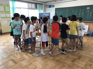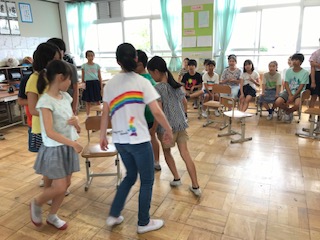 子どもたちは自分たちでけがをしないように工夫して,室内で椅子取りゲームをしていました!