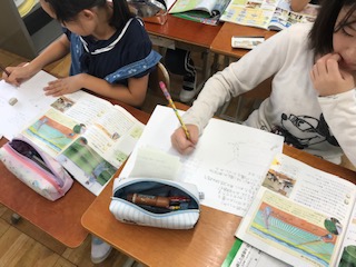 米作りに適した庄内平野の特色についてまとめたり,水田で使う機械についてまとめたりして学習をふりかえることができました。