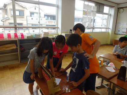 工夫が楽しい作品がたくさんありました。時間の取れる夏休みに自分が興味をもった事に取り組めたようです。