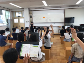 音楽はK先生と一緒に歌を歌ったりリコーダーを吹いたりします。