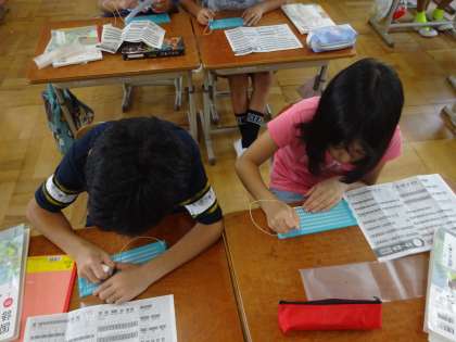 総合の学習と関連して,点字を実際に打つ学習をしました。自分の名前や好きなものなど集中して取り組んでいました。