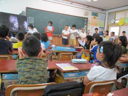 6年生が修学旅行で学習してきたことを3年生に伝えてくれました。戦争の恐ろしさや悲しさ,原子爆弾やその爆弾が投下された場所などについて,パワーポイントを使って説明してくれました。みんな写真を見たり,「ちいちゃんのかげおくり」のお話を思い出したりしながら,真剣に耳を傾けていました。