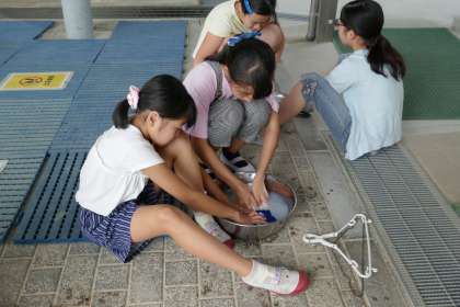 家庭科の「夏をすずしく さわやかに」の学習で洗濯の体験をしました。