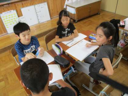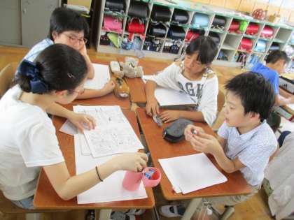 ということで,クラスではたてわり遊びの内容を考えました。前回の反省で盛り上がりが足りなかったと感じたグループは,グループ対抗の遊びを考えたり,小道具を作ったり,工夫を凝らしていました。明日もがんばってね!