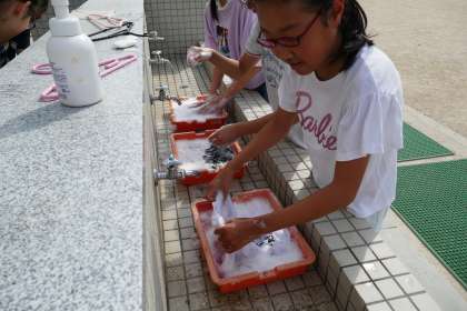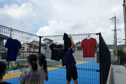 乾いたTシャツに鼻を近づけて良い匂い!!と言っている子もいました。