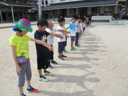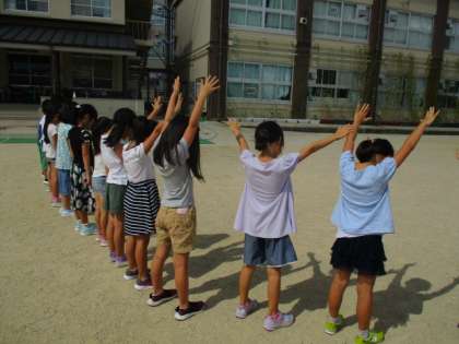 今日は天気がよく,少し雲はあったものの「かげおくりのよくできそうな空」だったので,実際にかげおくりをやってみました。運動場に並んで,まばたきせずに,十数えて空を見ると・・・。「あっ!あった!」「見えた見えた!」ちょっとコツが必要でしたが,みんないろんなポーズを試しながら,たくさんのかげを空におくっていました。