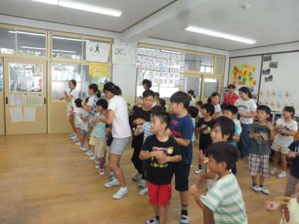 運動会のペア学年種目に向けて,6年生がダンスを教えにきてくれました。
