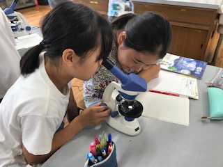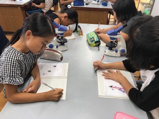 今日は,ツルレイシの花粉です。うまく顕微鏡のピントを合わせて観察していました☆
