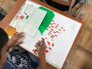ブロックや木を丁寧に塗っていきます。