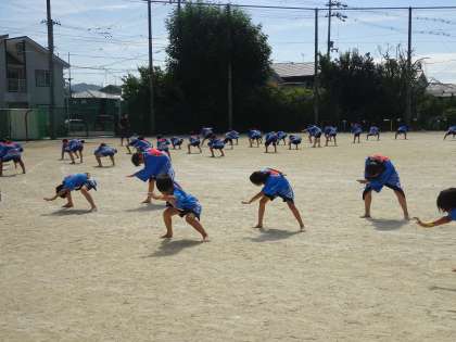声が大きくそろうようになってきました。指先までぴんと伸ばすようにがんばっています。