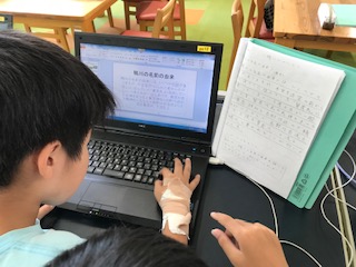 アニメーションを付けたり,文字の大きさを変えたりしてパワーポイントを楽しそうに作っています♪