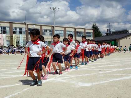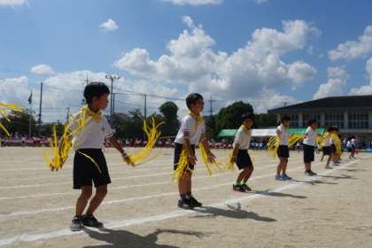 2曲目は,それぞれの色で,1列になり,動きをそろえることを意識しながら踊りました。