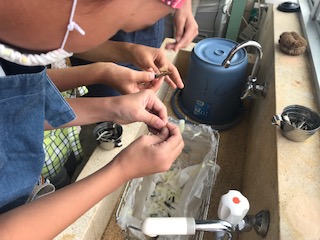 煮干しからだしをとる準備も同時進行です。