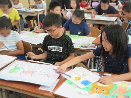 図画工作科の学習で,お話の絵を描きました。
