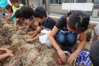 さつまいもの頭が見えてきたら,慎重に少しずつ揺らしながら引っ張りました。