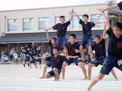 5人技は,早い音楽に合わせて開いたり閉じたり・・・