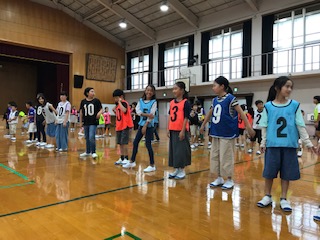 運動会の色ごとに体育館や運動場,教室に分かれて6年生が考えてくれた遊びをします!