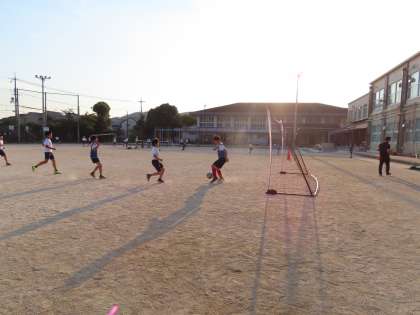 先日の部活動では,ゴールを使っての練習しました。いつも以上にやる気まんまんの子どもたちで,ゲームも盛り上がりました。