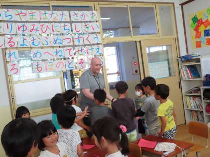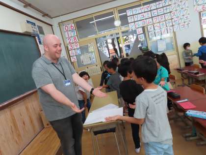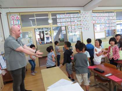 1年3組では,ライリー先生と一緒に英語活動の学習をしました。