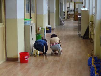 絵の具をつかった後に,筆洗の水が廊下にこぼれてしまいました。