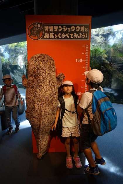 と,自分よりも背が高いオオサンショウウオにびっくり!
