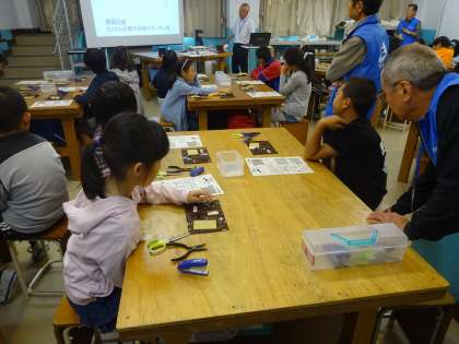 工房学習では,「音を奏でる魔法の石ころ」で,音の鳴る装置を作りました。