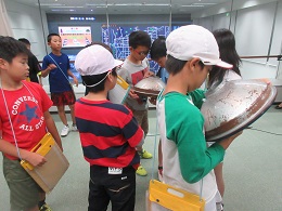 信号機の実物を見せてもらって,子どもたちはその大きさや重さにとても驚いていました。