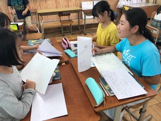 一緒に活動をしてきたグループに戻って,見つけてきたいいところを交流していました。